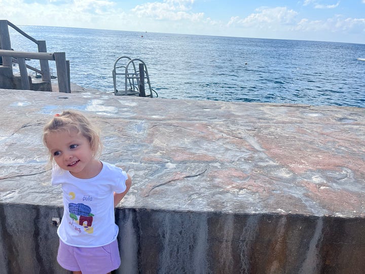 Freya and Maev have the time of their lives playing in the sand. We’ve started limiting Maev’s shell collection because she finds too many itty bitty shells to count. She would happily play with them all day long if we didn’t interrupt her to go home or eat food.
