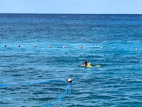 After practicing for a couple weeks in the pool, Magnus was finally ready to try snorkeling for real in the ocean. We went to Jeanie’s on a nice calm day and let him loose.